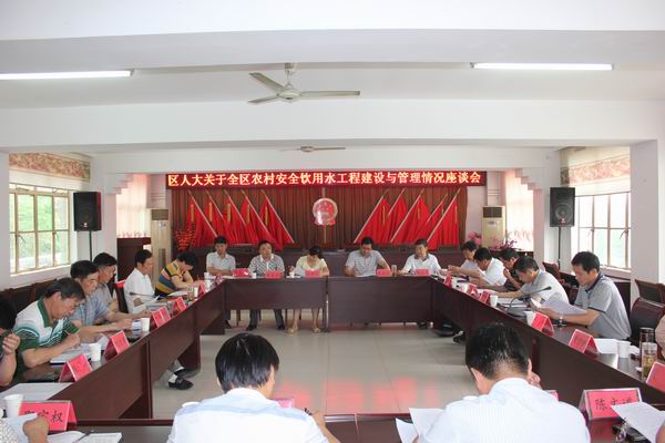 视察组先后来到沙黄水厂管网延伸黄泥岗镇段、黄泥岗镇自来水厂、沙河镇老水厂、沙黄自来水厂、珠龙镇自来水厂、广卫增压站等,实地察看水厂、管网建设及管理运行情况。召开由区人大代表、乡镇分管领导、水利部门有关同志参加的座谈会,听取了区、镇政府及水利部门负责同志关于全区人饮工程建设情况的汇报,并与镇村干部、人大代表、水厂经营者进行交流,听取了他们的意见建议。