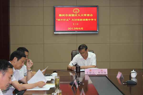 6月14日,区人大常委会党组书记、主任林永海主持召开了人大机关“四个什么”活动第二次集中学习及专题讨论会,区人大常委会副主任盛恩松、李永葆、王良琪和机关各委室人员参加了会议。区人大常委会领导班子围绕“四个什么”活动的主题,结合各自分管工作率先发言,其他工作人员也纷纷就如何分析查找自身岗位存在不足、寻找工作新思路踊跃发言。林永海主任强调,区人大机关的全体同志要落实刚才各自发言中所提目标,按照活动实施方案,结合各自工作岗位,理清思路,拉升标杆,积极履行职责,努力创造一流人大工作业绩;同时区人大机关活动办公室要继续组织好下一步活动开展,确保人大机关“四个什么”大讨论活动取得实效。
