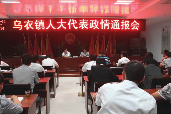 镇党委副书记、镇长周祖议代表乌衣镇政府作了政情通报发言。2015年上半年全镇完成工业总产值16.6亿元,其中规模以上工业总产值16.37亿元;工业增加值3.86亿元,其中规模工业增加值3.77亿元;社会固定资产投资完成6.1亿元;完成招商引资3.7亿元;社会消费品零售总额7020万元,完成外贸出口额460万美元;财政收入3750万元。