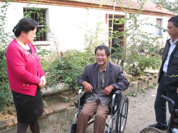 腰铺镇人大代表、镇人大主席钟晓青在走访选民、征求选民对镇人大、政府工作的意见和建议时,了解到二郎村黄永仕一家生活非常困难,妻子早年因病去世,家里还有个80岁的老母亲和正在上高中的女儿。黄永仕因意外残疾,使用的轮椅已破旧不堪,长满了铁锈,剩下三个轮子,只能勉强维持使用。腰铺镇人大主席钟晓青看到这样的情况,心痛不已,说到:“村民这样的困难,我们不能不管,一定要为他解决这个困难。”