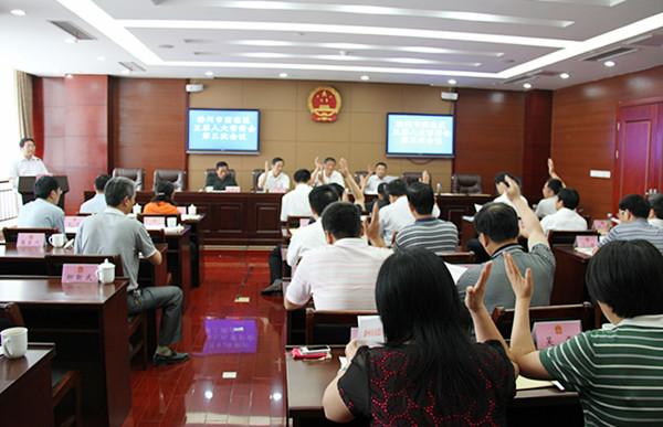 会议听取并审议了区政府关于五届人大常委会第二次会议审议意见办理情况的报告;听取并审议了区政府关于集体土地确权和发证工作开展情况的报告;听取并审议了区政府关于农田水利基本建设开展情况的报告;听取并审议了区政府关于《老年人权益保障法》贯彻实施情况的报告;听取并审议了区政府关于《税收征管法》贯彻实施情况的报告;听取并审议通过了区政府关于将南谯区锦绣湖三期保障性安居工程BT项目回购资金列入年度土地出让金支出计划的报告;听取并审议通过了区政府关于将洪武东路道路工程BT项目建设资金纳入区级财政预算管理的报告;听取并审议通过了区政府关于将南谯新城双洪公园及周边地块综合开发BT项目建设资金纳入区级财政预算管理的报告;讨论通过了《滁州市南谯区人民代表大会常务委员会开展专题询问实施办法》(草案);听取了区人大内司工委关于区人大常委会视察全区“六五”普法工作开展情况的报告;会议还进行了相关人事任免,并颁发任免证书。