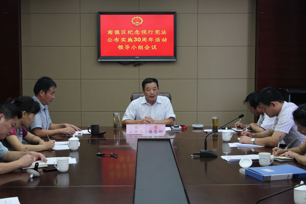 为纪念现行宪法实施30周年,进一步提高全社会特别是国家机关工作人员的宪法意识和人大意识,在市人大会议后,南谯区参会同志第一时间向区委、区人大主要领导汇报,取得支持。8月24日上午召开了区纪念现行宪法颁布实施30周年活动领导小组会议。