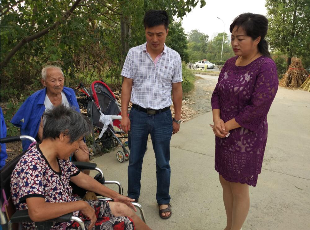 在花园社区贫困户张桂云家中,区人大代表、龙蟠社管中心党工委书记李道中亲切地与她拉家常,询问她中秋节将怎么过?子女回不回来?有没有准备菜?身体现在状况如何?等等,并随即送上慰问金和,提前祝她节日快乐。