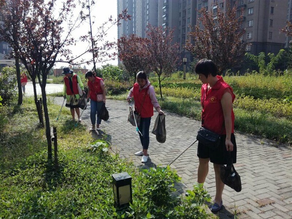 志愿者们身着统一的“红马甲”,手拿铁钳、垃圾袋等工具,在高温烈日下,发扬不怕苦、不怕脏、不怕累的奉献精神,认真捡拾小区绿化带、沿途道路两侧树木、草丛里的烟头、纸屑、塑料袋等杂物,又对小区的卫生死角进行统一清扫;同时向小区居民和过路行人宣传 “垃圾烟头不落地、亭城我家更美丽”和“不在公共场所吸烟”等文明行为,用实际行动引导大家树立爱护环境的文明理念。