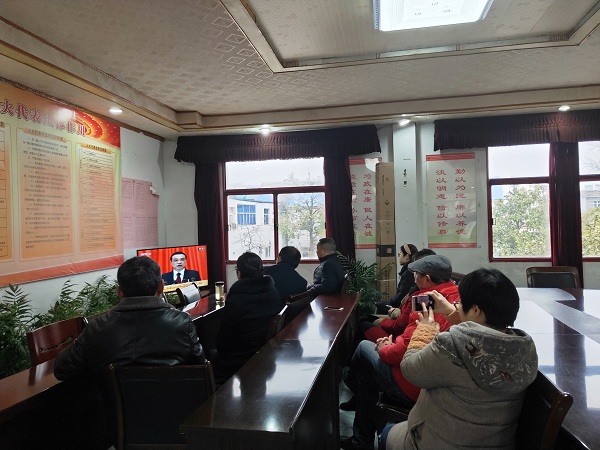 3月5日上午,腰铺镇人大组织驻镇的市、区、镇三级人大代表共同收看十三届全国人大二次会议开幕式实况直播,认真聆听国务院总理李克强所作的政府工作报告。